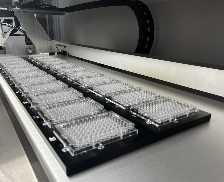 In order to save your precious samples and reduce the time for washing in between, the number of targets on the deck should be as large as possible. In this case, 22 target-MTPs fit on our iONE-1200 — an ultra-fast, high-precision, liquid-handling system.